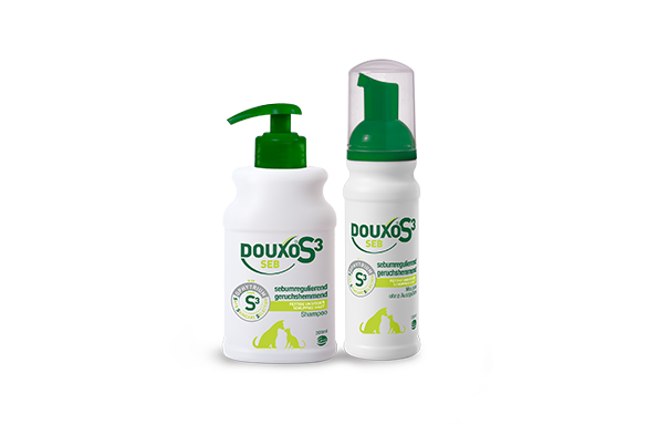 Riecht dein Tier unangenehm, oder leidet es unter Schuppen? Entdecke DOUXO® S3 SEB, die Produktlinie, die von Tierärzten empfohlen wird, um fettiger und trockener Haut bei Katzen und Hunden zu helfen. Hergestellt mit hochwertigen Inhaltsstoffen für höchste Wirksamkeit und Sicherheit kombiniert die DOUXO® S3 SEB Reihe ein Shampoo gegen Schuppen und gleichzeitig unangenehme Gerüche. Erhätlich als Shampoo und Leave-on-Mousse, um Gerüche und Schuppen effektiv zu beseitigen. Die SEB Linie beinhaltet natürliche Extrakte mit talgregulierenden Eigenschaften, um die Haut deiner Katze oder deines Hundes sanft, aber wirksam zu pflegen und Probleme wie seborrhoische Dermatitis zu behandeln, während sie gleichzeitig die Haut stärkt, ausgleicht und beruhigt.