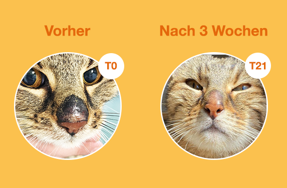 Das Team von DOUXO® S3 hat ein spezielles, patentiertes Pflegeprogramm für Katzen mit einer Neigung zu Hautinfektionen entwickelt: Beginne die Behandlung mit einem einmaligen Bad, um Krusten zu entfernen und wende danach täglich für 2 bis 3 Wochen die DOUXO® S3 PYO Pads an. Wir empfehlen, die Behandlung eine weitere Woche lang fortzusetzen, da es meistens etwas länger dauert, bis die Mikroflora der Haut wieder im Gleichgewicht ist. Auf keinen Fall solltest du die Behandlung frühzeitig abbrechen, auch wenn die Haut bereits wieder gesund aussieht.