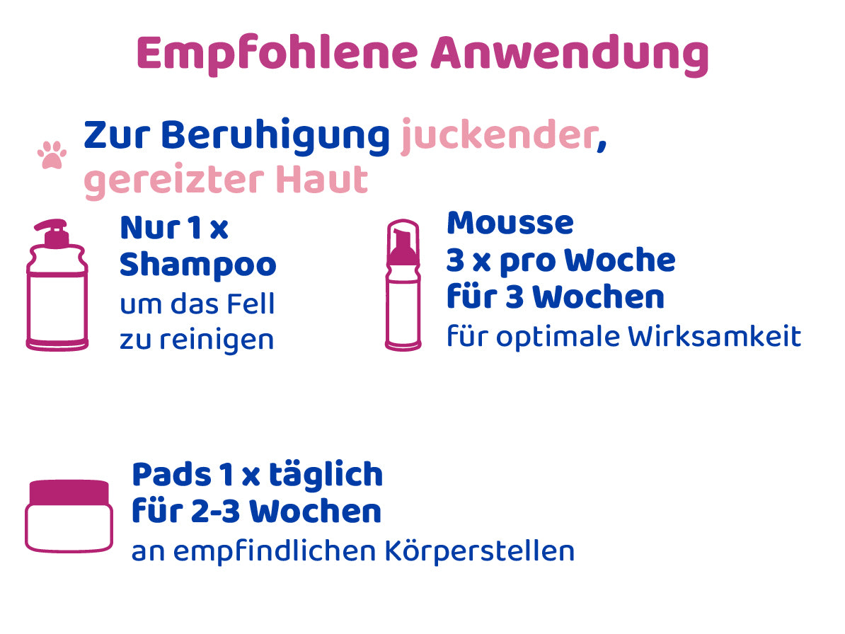 DOUXO® S3 CALM ist ideal bei juckender und gereizter Haut bei Hunden und Katzen. Die Produktlinie wurde mit Tierärzten entwickelt. Sie verschafft schnelle Linderung bei Juckreiz und Irritationen. Mit hochwertigen Inhaltsstoffen für höchstmögliche Sicherheit und Wirksamkeit ist DOUXO® S3 CALM eine angenehme und einfache Lösung, um die empfindliche Haut deines Haustieres zu beruhigen: Die Produkte verleihen ein weiches, glänzendes Fell und ein bieten einen angenehmem Duft.