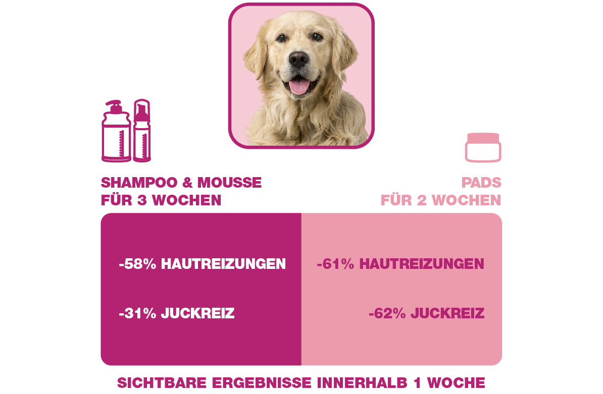 DOUXO® S3 CALM reduziert wissenschaftlich nachgewiesen Juckreiz schon innerhalb von 7 Tagen. Die besten Ergebnisse werden nach 3 Wochen Anwendung erzielt.