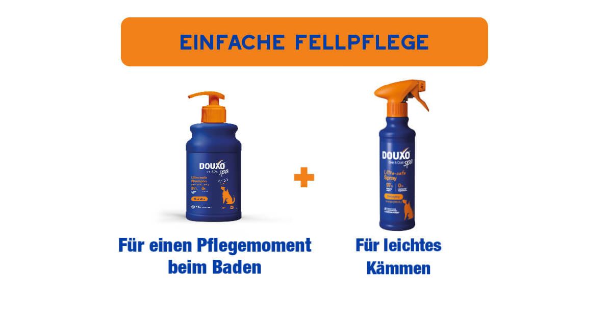 Eine gute Fellpflege steht und fällt mit den richtigen Produkten. DOUXO® SPA Produkte sind höchst verträglich und effektiv, was sie zu der richtigen Wahl für euch macht. DOUXO® SPA wurde speziell unter tierärztlicher Aufsicht entwickelt, um eine sichere und zuverlässige Pflege für dein Haustier zu gewährleisten.