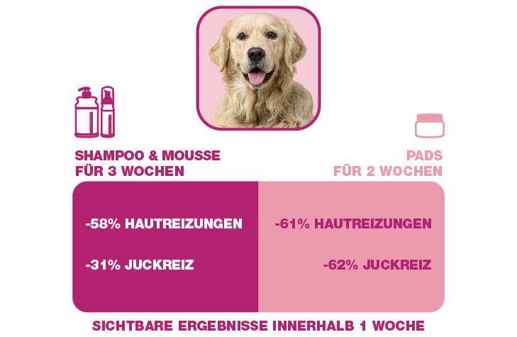 DOUXO® S3 CALM reduziert wissenschaftlich nachgewiesen Juckreiz schon innerhalb von 7 Tagen. Die besten Ergebnisse werden nach 3 Wochen Anwendung erzielt.